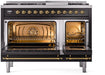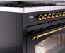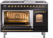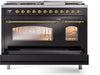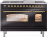 ILVE Nostalgie II 48" Dual Fuel Liquid Propane Range,Glossy Black, Brass Trim UP48FNMPBKGLP