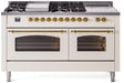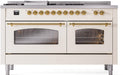 ILVE Nostalgie II 60" Dual Fuel Liquid Propane Range, Antique White, Brass Trim UP60FSNMPAWGLP
