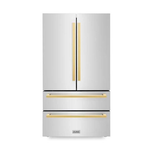 View full detailsZLINE Autograph Edition 36" 4-Door French Door Refrigerator, Ice Maker, Stainless Steel, Polished Gold Square Handles RFMZ-36-FG Luxury isn’t mea...