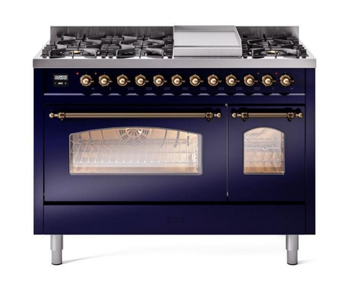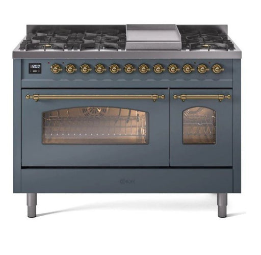 View full detailsILVE Nostalgie II 48" Dual Fuel Liquid Propane Range, Blue Grey, Brass Trim UP48FNMPBGGLP Please call (800)604-1380 Ext#2 before placing your orde...