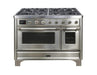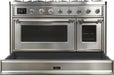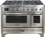ILVE Majestic II 48" Dual Fuel Natural Gas Freestanding Range, Stainless Steel, Chrome Trim UM12FDNS3SSC