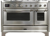ILVE Majestic II 48 Inch Dual Fuel Natural Gas Freestanding Range in Stainless Steel with Chrome Trim UM12FDNS3SSC