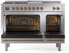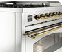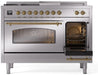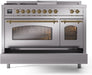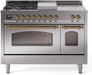 ILVE Nostalgie II 48" Dual Fuel Natural Gas Range Stainless Steel Brass Trim UP48FSNMPSSG