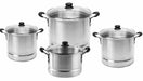 - Aluminum Steamer Set with Glass Lid: This product includes an IMUSA Aluminum Steamer Set with a glass lid that consists of four steamers with capacities of 16, 20, 24, and 32 quarts.