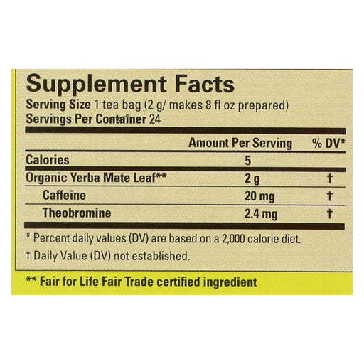View full detailsKick-start your day with Organic Ecoteas Unsmoked Yerba Mate Green Energy Tea Bags, the perfect pick-me-up for a natural energy boost. Unsmoked Ye...
