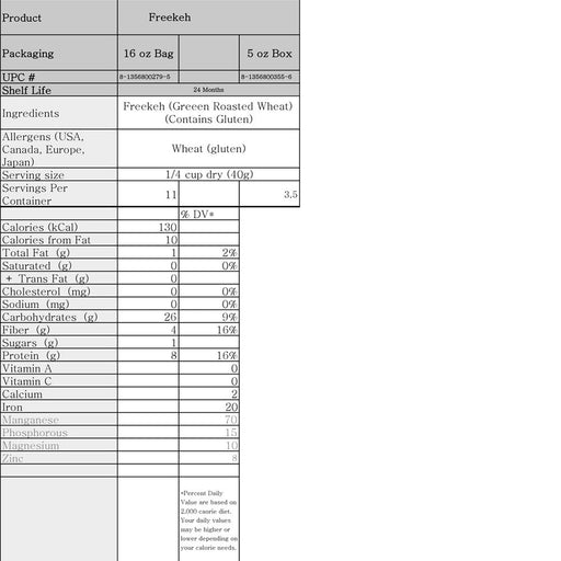 View full detailsFreekeh is young green wheat that has been roasted & cracked. The roasting brings out a rich flavor, and the cracking process breaks up the lar...