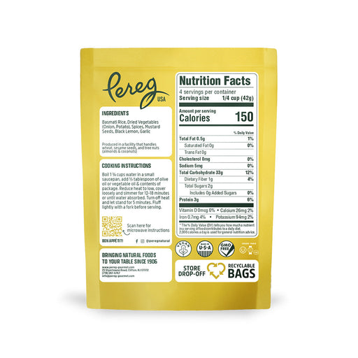 View full detailsEnjoy this pre-seasoned blend of basmati rice, lemon, dried vegetables, & spices as a quick & healthy side-dish, just add water & boil....