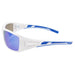 The METEL M30 Safety Glasses combine style and safety with a sporty full-wrap design offering top protection and a sporty look. Designed for comfort, they feature a rubber nosepiece and co-injected rubber temples for a secure, stay-in-place fit during strenuous activities. The polycarbonate lenses are scratch-resistant, hard-coated, and block 99.9% of UV rays. An included microfiber cloth helps clean them. The 8-base curve lenses provide a wide, distortion-free field of vision. Available in various colors, they meet ANSI Z87.1-2015 and CAN/CSA Z94.3 standards, making them ideal for work or outdoor activities.