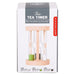 Color coded sand timers signify how long to brew white, green or black tea. Material: beechwood, glass, glass beads.