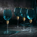 - Make a powerful statement with our Blue color Diamond Gold rimmed wine glass set of 4. This elegant glass set is made of mouth-blown borosilicate glass and features a beautiful gold rim and diamond stem. The classic design of these phenomenal wine glasses makes this set perfect for casual dinner parties or for more elegant occasions such as wedding receptions and anniversaries. An excellent addition to any glassware collection!