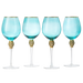 The Wine Savant Large Diamond Wine Glasses, 10" H Gold Rim Rhinestone Diamond Glasses - Wedding Glasses - 18 Ounce, Premium Designed Wine Glasses for Spirits and Wine, Gift Boxed (4, Blue)