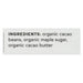 Raaka's Maple & Nibs Chocolate Bar is crafted with real maple and nibs, ethically sourced from the Congo and Dominican Republic. This USDA Organic, Non-GMO Project Verified, Natural Apple K Kosher Certified bar is 95%+ organic, gluten-free, vegan, yeast-free, and free of cane sugar. Benefits: - Crafted with 75% high quality cacao that supports community and stability - Includes a 1.8 oz bar with 132 calories per serving - No cane sugar for an irresistibly crunchy texture - Country of origin: United States Ingredients: - Organic Cacao Beans - Organic Maple Sugar - Organic Cacao Butter Keywords: - Cacao - Candy - Ethical - Gluten-Free - Kosher - Organic - Sweets - Treat
