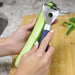 From peeling butternut squash to cucumbers, this horizontal shaped meridian vegetable peeler is designed to handle any task. Extra wide, Razor sharp swiveling blades peels through even the most toughest and robust vegetables and produce in less strokes than traditional peelers saving you more time in the kitchen. Hanging hole in handle for easy storage. Hand wash. SIZE: 7.25 Inches. COLOR: Indigo