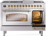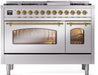 ILVE Nostalgie II 48" Dual Fuel Natural Gas Range, Stainless Steel, Brass Trim UP48FNMPSSG