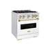 ZLINE 30" Dual Fuel Range, Gas Cooktop, Electric Convection Oven DuraSnow® Stainless Steel, White Matte Door, Gold CDRSZ-WM-30-G
