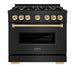 ZLINE 36" Classic Gas Range, Convection Gas Oven Black Stainless Steel, Gold CGRBZ-36-G