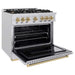 ZLINE 36" Dual Fuel Range, Gas Cooktop, Electric Convection Oven DuraSnow® Stainless Steel, Champagne Bronze CDRSZ-36-CB