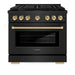 ZLINE 36"Paramount Dual Fuel Range Black Stainless Steel, Gold SDRBZ-36-G