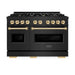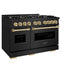 ZLINE 48" Dual Fuel Range, Gas Cooktop, Electric Convection Oven Black Stainless Steel, Gold CDRBZ-48-G