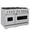 ZLINE 48" Dual Fuel Range, Gas Cooktop, Electric Convection Oven DuraSnow® Stainless Steel, CDRS-48