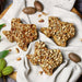 The cakes feature jagged edges for a savory crunch and a soft center for a delightful balance of flavors. Perfect for special occasions, our Texas pecan cake is sure to please. Choose from the various toppings or select the variety pack which has all three toppings. Each cake serves 1-2 people. Cake weights will range from 3.1-3.4oz based on topping selected. All cakes contain eggs, tree nuts, soy and wheat. Toffee and Chocolate topping contains milk.
