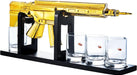 - DRINKING WHISKEY WILL NEVER BE THE SAME: AR15 Gold Gun Decanter & 4 whiskey glasses paired with a wooden display stand. Can you imagine how classy this will look in your bar? This handmade AR15 whiskey decanter gun will start your drinking with a bang. The gun with it's details is sure to be a wonderful addition to any home bar.