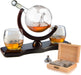 - THE LUXURIOUS DECANTER EXPERIENCE: Embrace your love of both travel, adventure and a good whiskey/scotch. This beautiful mouth blown globe decanter is a must have. The Airplane model is reminiscent of old times and the wood base has an amber hue which makes this a beautiful home piece. Comes with 3 10 oz Glasses.