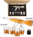 - DRINKING EXPERIENCE THAT WILL BLOW YOU AWAY: Each drinking experience, whether it's a celebration, wedding anniversary, or birthday is special. Make it unique with these beautiful bar tools. This set includes all you need to create an impressive Old Fashioned cocktail for guests at home or while out on the town. Comes with 8 whiskey Bullet stones, 4 pistol whiskey glasses, and 1 large realistic gun decanter all stored away in the elegant American flag-style wooden and steel box!
