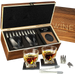 Luxurious Bar Gift Set - 2 Whiskey Glasses + 10 Bullets Chilling Stainless-Steel Whiskey Rocks - Slate Stone Coasters & Tongs - Set in Premium Wood Box by The Wine Savant - Birthday Gift - 11 oz Glass