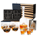 - STRIKING & UNIQUE GIFT: A perfect gift for veterans. This gift set comes with everything a Marine would want to unwind with, including a decanter, 4 marine glasses, 4 bullet shot glasses, and a marine flask all encased in a beautiful American Flag Mahogany wood case. Appropriate for birthdays, anniversaries, Christmas, Valentine’s Day, Father’s Day, Mother's Day, Veteran’s Day, and Independence Day celebrations.