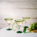 - These elegantly detailed green glasses are perfect for getting that party started! Whether you're chugging down a fiesta drink or putting those frosty beverages in this elegant set, you'll love the style and conversation that come with these. This set of 4 margarita glasses is perfect for hosting any get-together. These colorful margarita glasses are great to use during your favorite parties or gatherings. They also make great gifts for your friends and family.