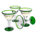 Mexican Hand Blown Martini & Margarita Glasses - Green Rim Detailed - Set of 4-10oz - Carmen Cinco de Mayo - Luxury Mexican Glassware Thick, Juice & Cocktail For Holidays & Celebration Confetti