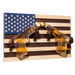• Shock your guests with this double Pistol Gun Decanter Set paired with an elegant American Flag wooden display stand. Can you imagine how classy this will look in your bar? This elegant gun shaped wine, whiskey or spirits decanter pistols are paired with a wooden display stand that makes it a classic piece in any home bar. Perfect gifts for men and women members of law enforcement, military, police officers!