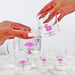 - Entertaining made easy by The Wine Savant! Its perfect for serving iced tea, lemonade and even cocktails! Experience the best of warm weather at home with the Flamingo glassware collection. Expertly crafted to reveal a jungle of tropical plants right before your eyes, this innovative artwork is a mesmerizing way to enjoy your next beverage. Each Flamingo is fully adorned in its vibrant glass vessel, conveyed with brush strokes of opalescent light pink on the elegant 9 oz palm tree glasses.