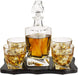 - BEAUTIFUL DECANTER SET ON WOOD HOLDING TRAY: This set of the hand carved Twisted Spiral Glacier Shaped Decanter and glasses, are part of The Wine Savant limited edition decanters and sets