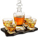 The Wine Savant Italian Crafted Crystal 5 Piece European Style Wine & Whiskey Decanter 855ml with 4 Glasses & Wood Sophisticated Tray Set Spirits, Scotch, & Bourbon Whiskey Decanter Sets for Men
