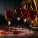 - The Wine Savant adds glamor to your table with this elegant diamond-shaped stem and red hue. Each glass is rimmed in gold, creating an understated luxury that enhances any occasion. Our borosilicate wine glass set of 4 is the perfect gift for anyone who enjoys a fine wine. Each glass has a diameter of 3.75", a height of 10", and holds 18 oz. The versatile glassware is the perfect accompaniment to any occasion and will surely add a touch of elegance to your table settings.