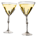 - Terrify and delight your guests when you dress up your next party with the Set of 2 Stemmed Skeleton Martini Glasses that each hold 7 oz of your favorite champagne. Your drinks will be even more delicious in these spooky glasses. A skeleton hand is depicted in an elegant form adorning the glass that holds your favorite cocktail in a silver finish. These glasses are designed to spook your guests, your visitors and yourself when you look at them. An eerie and elegant addition to any occasion.