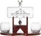 Whiskey Decanter Set, Liquor Dispenser for Home Bar, Crystal Glass - 1250ml Ship & 2 Whiskey Glasses Beautiful Stand Fathers Day, Gift for Dad, Husband or Boyfriend - The Wine Savant 100% Lead-Free