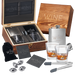 ELEVATE YOUR DRINKING EXPERIENCE: Upgrade your home bar, everything you need for a sophisticated drink is inside the pinewood box. Each drinking experience, whether it's a celebration, wedding anniversary or birthday is special. Make it unique with these beautiful modern glasses and football whiskey stones.