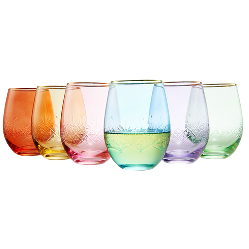 View full detailsGet ready to elevate the elegance of your home and host the perfect parties. This set gives you 6 colored gold-rimmed glasses, so that you can enj...