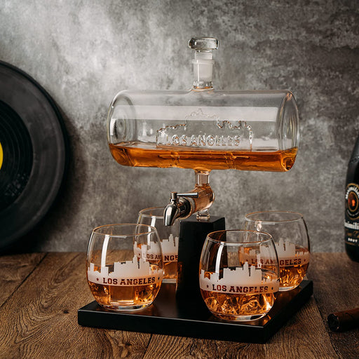 View full detailsThe Los Angeles Wine & Whiskey Decanter set is a combination of form and function, designed to enhance your home bar experience. A wooden maho...