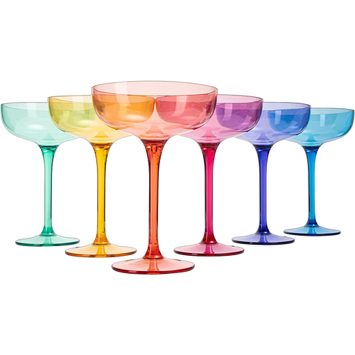 View full detailsOffering a unique hand blown Italian style, these coupe champagne glasses are a stunning accent at any table. A collection of six brilliantly co...