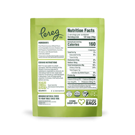 Pre-Seasoned blend of couscous, dried vegetables, & spices. Quick & healthy side-dish, just add water & boil.