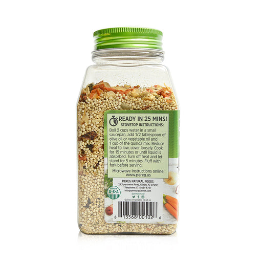 Pre-Seasoned blend of pre-washed quinoa with vegetables & spices. Quick & easy & healthy side dish - just add water & boil.