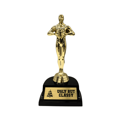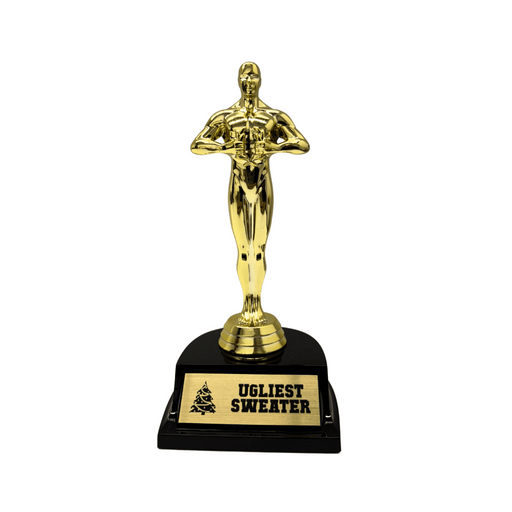 View full detailsFree Shipping Celebrate holiday hilarity with our 7-inch Ugliest Sweater Trophy, available in gold and brown.- Crafted in a plastic Oscar style, th...