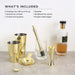 Our 7-piece commercial-grade gold cocktail shaker set has everything you need for making shaken, stirred, or muddled cocktails. With a stunning gold-plated finish, it's ideal for an aspiring mixologist or veteran bartender.