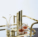 Beautiful barware deserves to be displayed with decorous style. Constructed from stainless steel with a gold finish, the Belmont bar cart succeeds in doing just that. Rubber-lined wheels make hosting a breeze, while dual mirror shelves reflect back the curated bar tools, stemware, and liquor that sit on each tier.