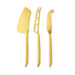 Slice and savor the likes of smoked gouda, Roquefort and Emmental with a sophisticated set of three mirror-plated gold cheese knives. Set features a small cleaver for hard cheeses, a perforated blade for soft cheese and a fork-tipped spear knife for breaking apart crumbly cheese.