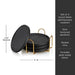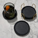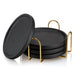 Sleek black earthenware makes these modern coasters stand out. Complete with raised rims to prevent spills and a gold stand for storage, this coaster set makes a unique addition to your home decor or a thoughtful gift for a friend.